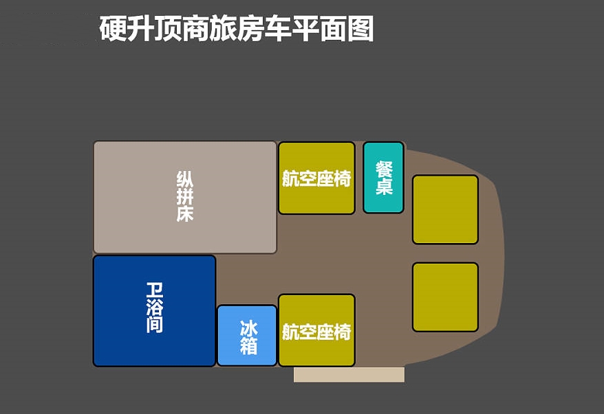 生活區內部由會客區、休息區、衛浴間及升頂結構組成,布局相對簡單,整臺車核載人數為4人,一家3口短途旅居更為合適。