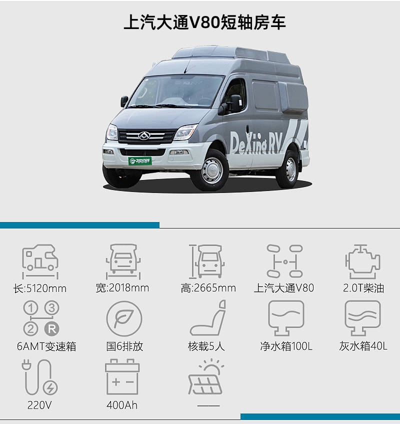 基于上汽大通V80短軸底盤打造,動力上搭載2.0T柴油發動機,最大功率102kW,139馬力,峰值扭矩330?!っ祝c其匹配的是6AMT變速箱,C2本就能駕馭。上汽大通V80采用承載式車身結構,相比非承載車身結構的貨車底盤,前者舒適性更高,非常適合改裝B型房車。
