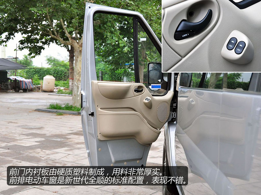 福特新世代全順原型車是歐洲福特全順系列的最新車型,是目前歐洲輕客的主流車型,榮獲2007年度“歐洲商用車大獎”等殊榮,世界輕客產品的“柴油化、轎車化、安全化、環保化”的“四化”趨勢,在福特新世代全順上得到良好的體現。在動力、空間、舒適、操控、承載等方面,福特新世代全順均突破了以往輕客的標準,為行業樹立了新標桿。福特新世代全順首次采用多項國際領先技術,創造了很多輕客行業的第一。該車裝備福特原廠2.4升DURATORQ TDCI高壓共軌柴油發動機,最大功率可以達到103千瓦,能持續輸出370Nm的最大扭矩,排放滿足歐三或歐四標準,為目前輕客行業動力、環保性能最佳的產品。為了匹配這款大扭矩大功率發動機,福特新世代全順匹配了一款6速手動變速箱。大大提升了行駛舒適性和平順性,實現動力輸出更加高效綿密、換擋平順省力、低檔起步更有力、傳動比分配符合最佳的經濟性曲線從而更加省油。