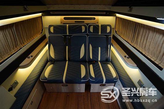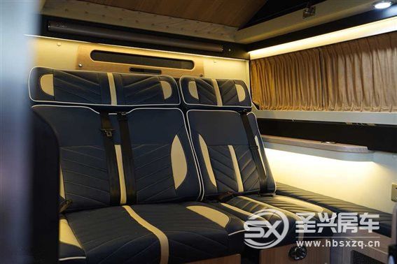豪華會客區(qū)便是這輛房車的重中之重。素色超纖內(nèi)飾,少許木紋的點綴,一股濃濃的商務(wù)范。全車隔音止震保溫處理,可以為商務(wù)洽談提供一個靜謐的空間。當(dāng)忙碌了一天想休息時,將卡座拼床,打開后艙定制音響,聽著音樂,拉上商務(wù)車專用高級窗簾,小憩一會。休息好了又可以去談幾個小目標(biāo)的合同了。家用變頻冷暖空調(diào)可以始終保持車內(nèi)舒適的溫度。