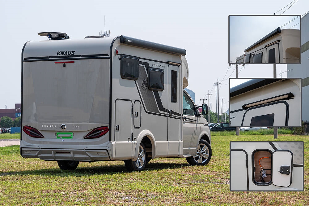 外部方面遮陽(yáng)棚、特魯瑪柴油加熱器、中門踏步、戶外LED照明以及創(chuàng)新的簡(jiǎn)易維修箱,將所有設(shè)施連接集中在同一個(gè)位置使一切都易于維護(hù)維修。另外特別值得一提的是車尾有一個(gè)超大的貫通儲(chǔ)物艙,再配上180度的開口方便整理物資的同時(shí)也為露營(yíng)、設(shè)備及其它大件行李和物品提供了充足的存儲(chǔ)空間。