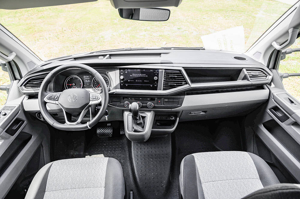 駕駛室中控就是標(biāo)準(zhǔn)的大眾布局,中間操作區(qū)向適當(dāng)駕駛員一側(cè)傾斜便于駕車時(shí)操作,座椅材質(zhì)采用皮質(zhì)/織物混搭,裝配有新款多功能真皮方向盤、支持Carplay/導(dǎo)航的中控大屏、坡道輔助、緊急制動(dòng)輔助、自適應(yīng)巡航、自動(dòng)大燈、自動(dòng)雨刷、胎壓監(jiān)測(cè)、座椅加熱等,和乘用車主流配置保持一致。