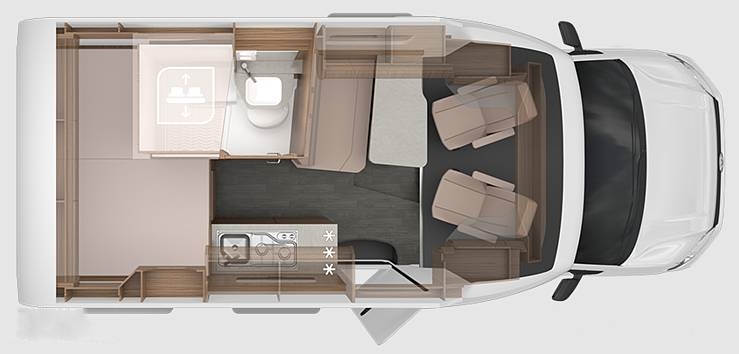 Weinsberg基于大眾T6.1車型改裝的房車,它擁有兩種不同的內(nèi)部布局方案,分別是500 MQ(前置上門)和500 LT(后置上門)。