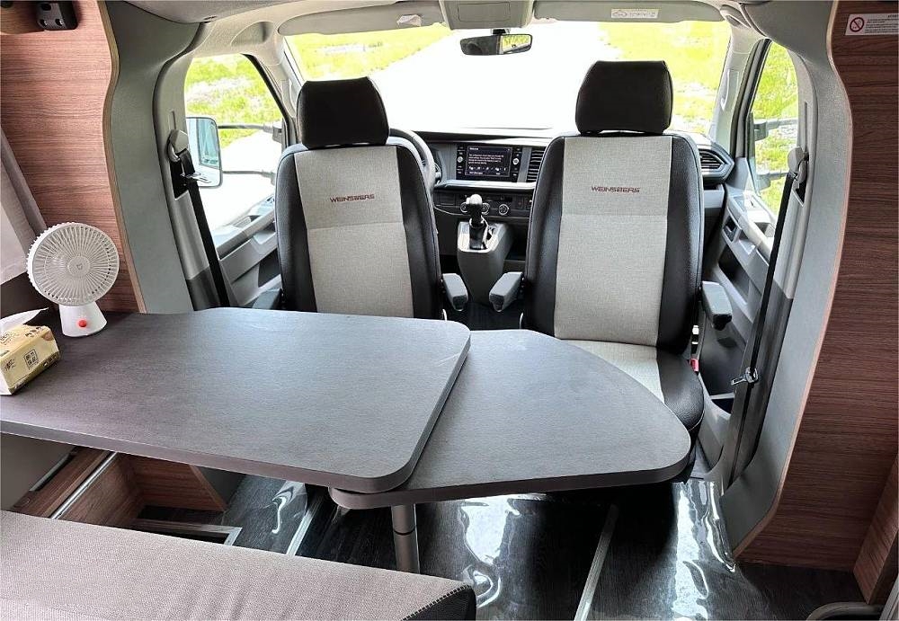 這臺(tái)大眾T6 MQ使用前上門布局,打開車廂門中間就是會(huì)客區(qū),采用單排卡座+餐桌的形式,主副駕駛座椅均可旋轉(zhuǎn),當(dāng)主副駕座椅向后旋轉(zhuǎn)后便可與后排形成對(duì)坐布局,餐桌還帶有延長(zhǎng)拓展桌板滿足旋轉(zhuǎn)后4人同時(shí)使用,日常會(huì)客、就餐、辦公以及娛樂活動(dòng)都不在話下。