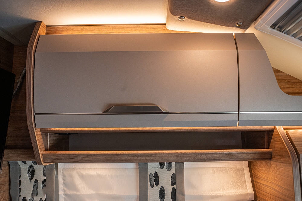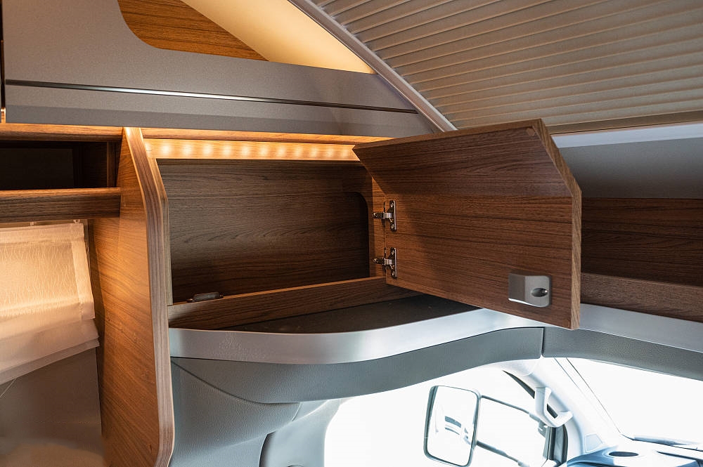 床鋪下方是一個(gè)實(shí)用緊湊的小型衣柜,內(nèi)部帶有掛衣桿、衣架和一個(gè)鞋類隔間,對(duì)于車內(nèi)隨處可見的奇思妙想讓我感到驚喜。