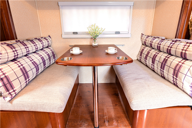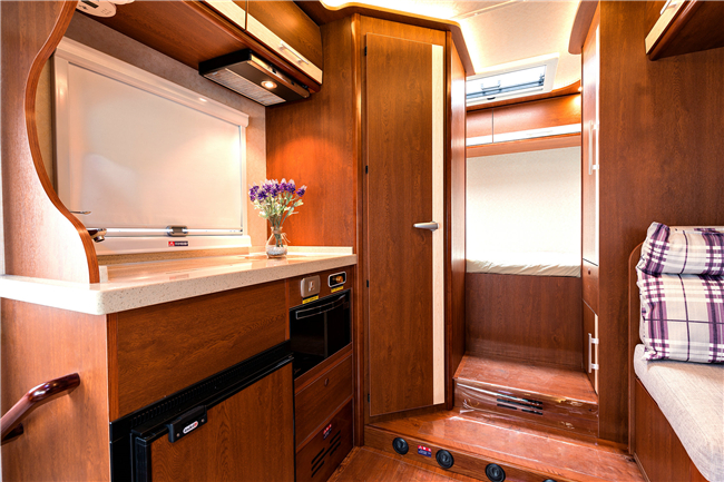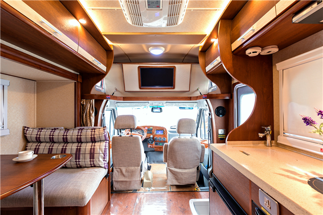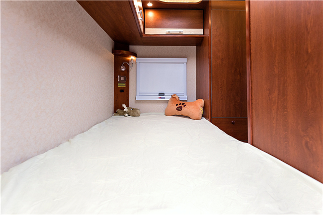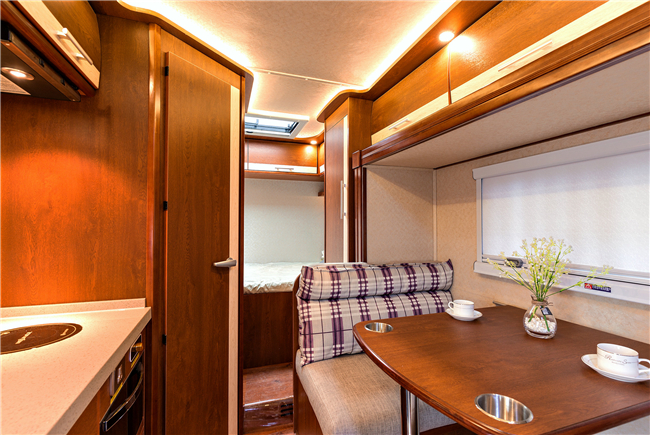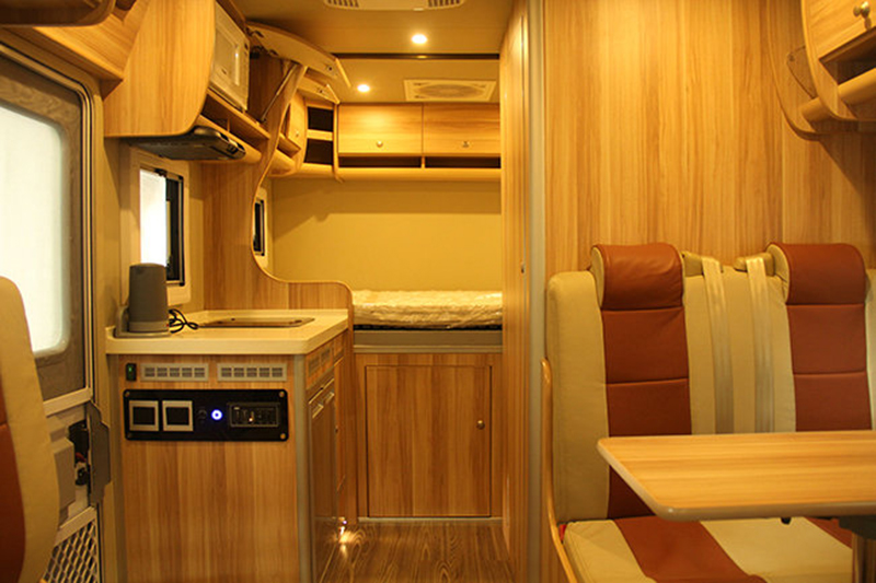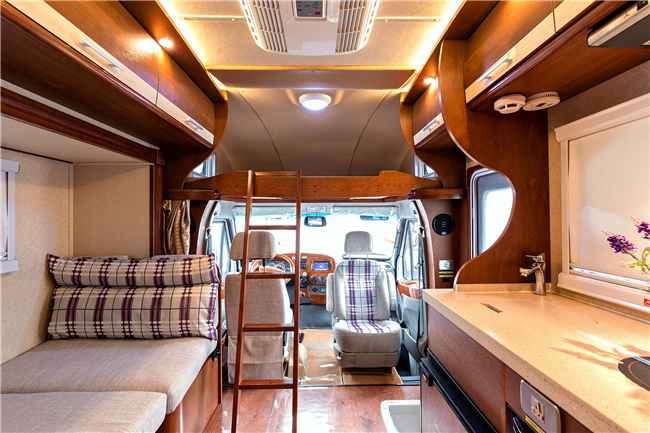 除了這個(gè)布局,我們也可以改裝成C型房車的經(jīng)典布局: