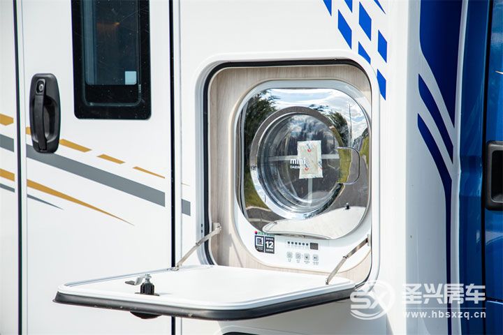 房車作為生活的載體,基本的生活設備這里都給已準備完善。洗衣機、廚房、室外淋浴等等一樣不少,值得一提的是這臺依維柯S800將洗衣機的開口位置放到了車身外側。你是否喜歡這種創新的安排呢?