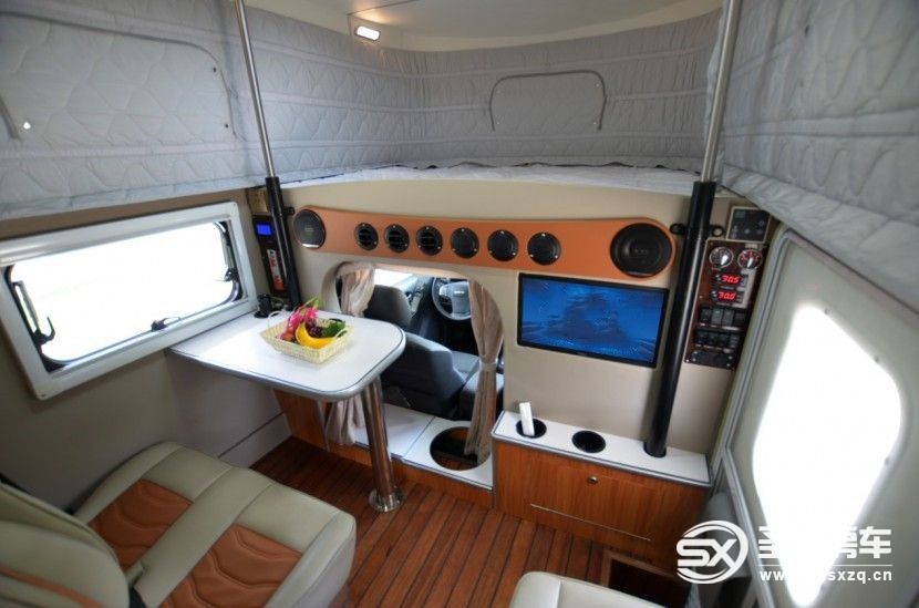 國內(nèi)首款駕駛室與上裝一體化設(shè)計(jì)、車頂升降式設(shè)計(jì),行車安全,停車方便,是國內(nèi)唯一能進(jìn)地下車庫的房車;