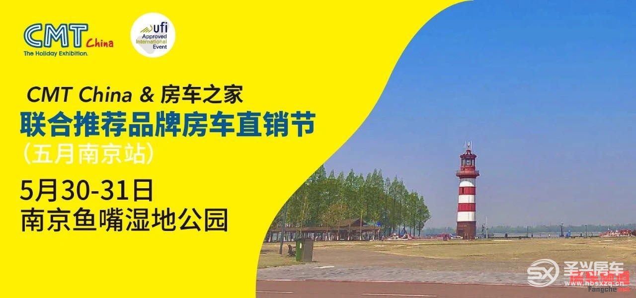 南京國際度假休閑及房車展覽會(CMT China)主辦方南京斯圖加特聯合展覽有限公司與房車行業專業標桿媒體房車之家將聯合于5月30-31日在南京魚嘴濕地公園舉辦CMT China & 房車之家聯合推薦品牌房車直銷節(五月南京站)。