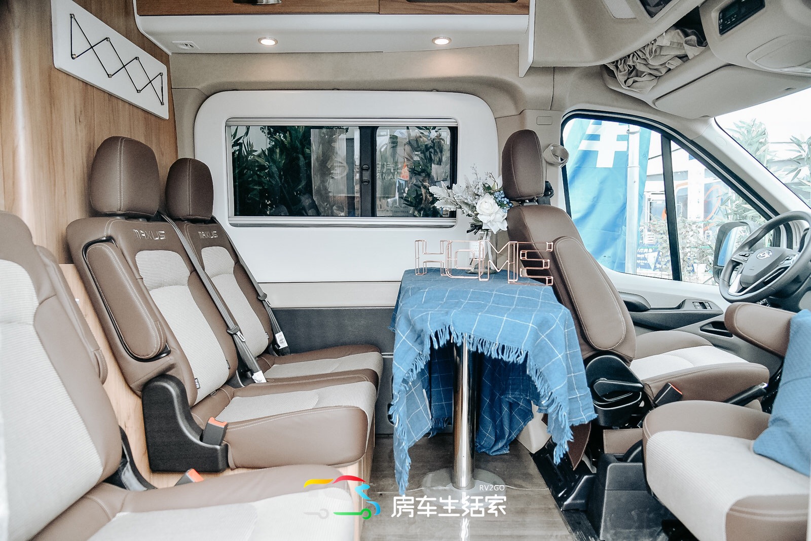 RV90 B型還具備多項業(yè)界首創(chuàng)優(yōu)勢,在首次采用的全新設(shè)計、行業(yè)領(lǐng)先的智享科技、更關(guān)注出行安全的智全安心、注重消費(fèi)者體驗的舒享升級、關(guān)注實際應(yīng)用需求的惠享便捷等方面表現(xiàn)出色。RV90 B型在外形設(shè)計上進(jìn)行了升級,智聚八方鍍鉻前臉取代了原本的飛翼式前臉,外觀提供5種配色供選擇,滿足個性化需求。進(jìn)入RV90 B型房車內(nèi)部,全新的內(nèi)飾風(fēng)格以及流行配色打造出時尚感,自主研發(fā)的隨動式紗門開啟方式具備更好的通過性和更通透的乘坐體驗。電視機(jī)內(nèi)嵌固定于頂飾板,形成了簡潔美觀的一體式電視墻。在智享科技方面,RV90 B型搭載了ADAS智能駕駛輔助系統(tǒng),保障行車安全。首創(chuàng)搭配自動感應(yīng)全LED大燈,全景攝像頭,自動感應(yīng)雨刷。超行業(yè)標(biāo)準(zhǔn)的防腐設(shè)計,有效保證白車身10年不銹穿以及避免外板邊界銹蝕。