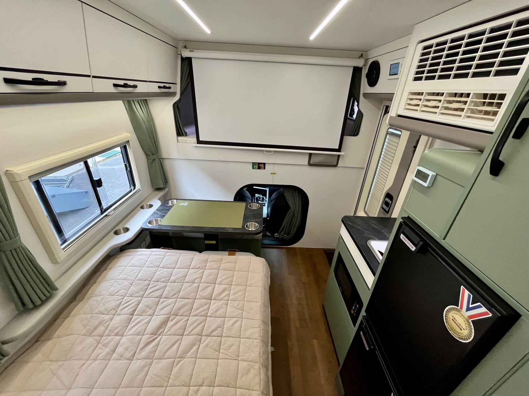 電器配置:48伏直流變頻空調,英得爾車載冰箱,微波爐,洗水池,水龍頭,洗衣機,燃油暖風,投影儀