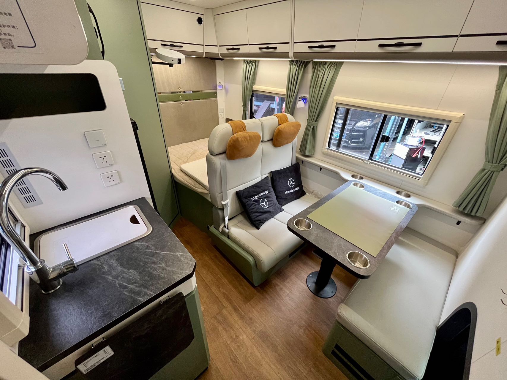 戶外配置:戶外抽拉式燃氣灶,戶外遮陽棚,市電接口,重力加水口,儲物艙,自動駐車支腿,行李背包。