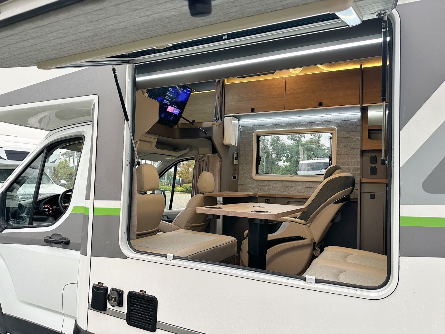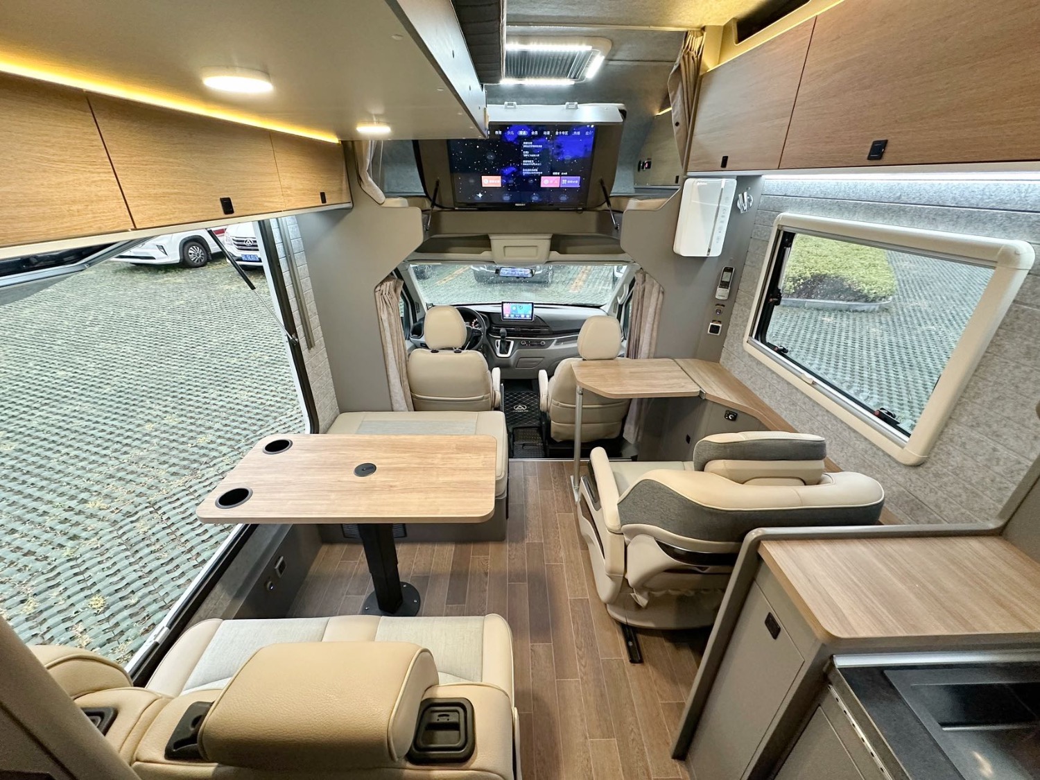電器配置:頂置多美達IBIS4變頻空調(diào)、燃油鍋爐、網(wǎng)絡電視機、航空座椅、電動吊床、卡座拼床、額頭大床、隱藏式廚房操作臺、洗臉池、洗菜池、洗衣機、微波爐、電磁爐、多美達旋轉(zhuǎn)抽拉馬桶、淋浴花灑、電動換氣扇、超大側(cè)邊窗、新能源充電口+220家用充電口、戶外抽拉柴油灶、戶外遮陽蓬、菲亞瑪上門扶手、電動踏步。