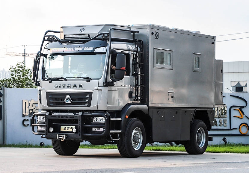 和國內常見的重卡房車一樣,汕德卡采用方艙形式,廂體部分為熱斷橋硬化骨架六層加強保溫車身結構。