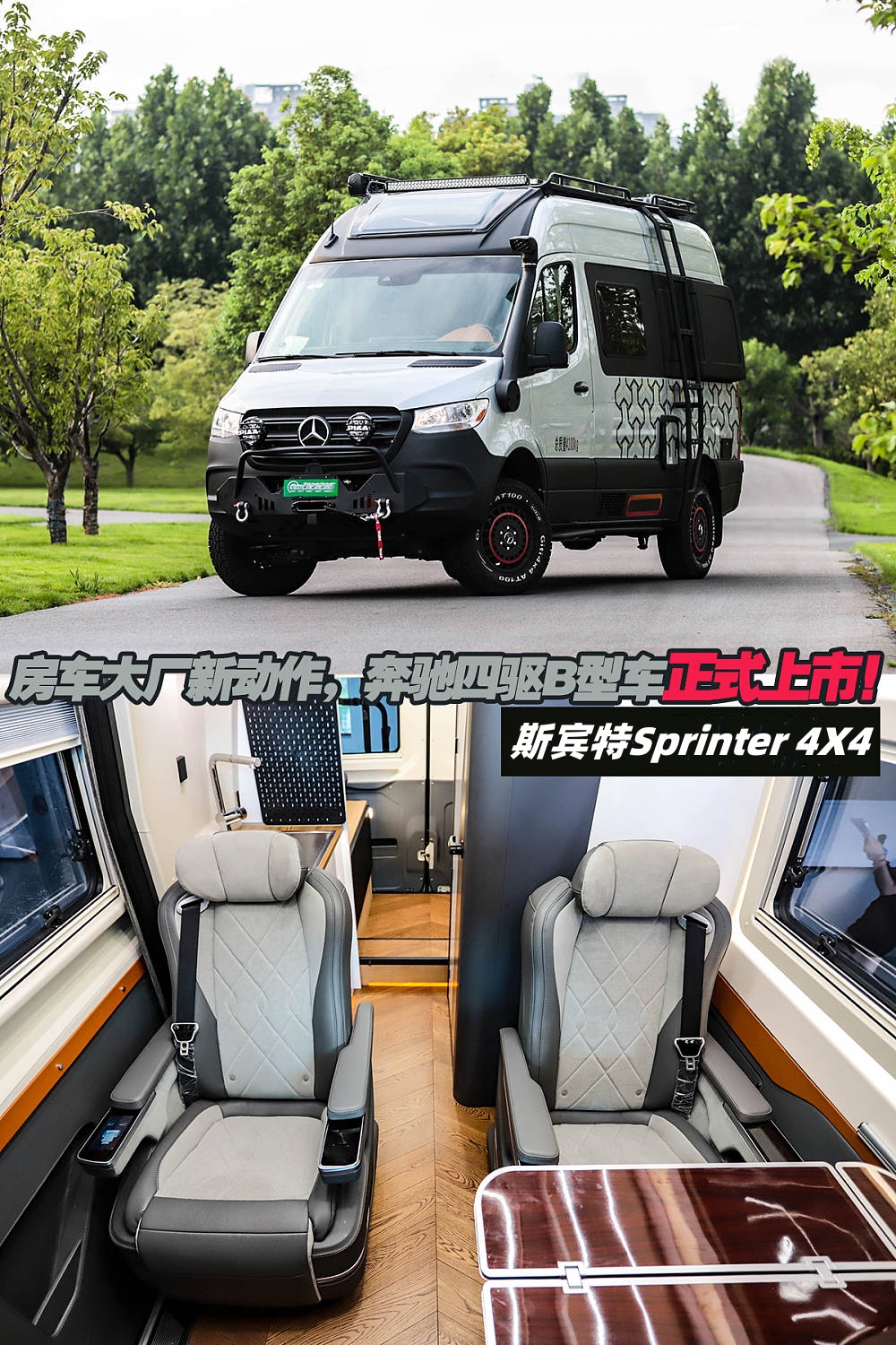 奔馳斯賓特(Sprinter) 4X4是一款適合少人數旅居體驗的越野B型車,外觀涉及突出硬派風格,而在硬件方面,四驅系統+中央差速鎖更適合穿越環境或者簡單的越野路段。生活區部分,兩張商務座椅有效提升長途旅居的舒適性,完整的廚衛配置也能滿足基本旅居訴求。今天我們先來了解這款奔馳B型房車吧。