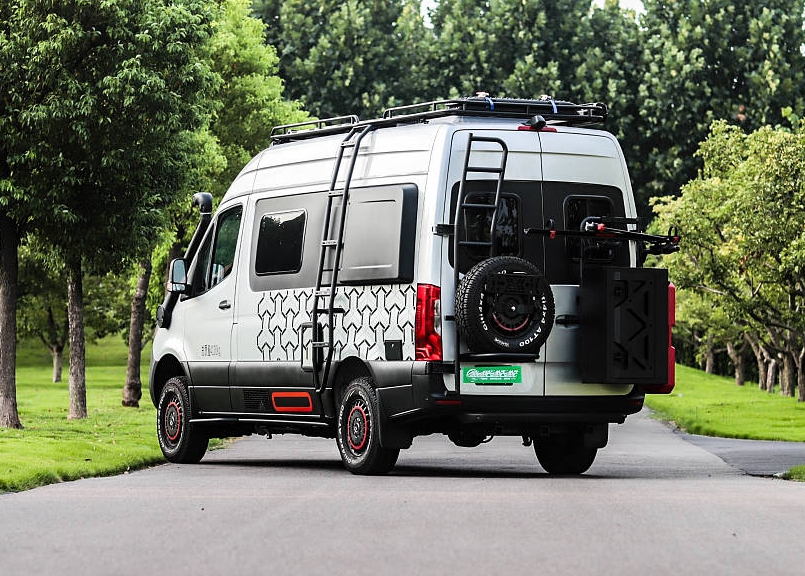 奔馳斯賓特(Sprinter) 4X4 B型房車在外觀上進行了全副武裝,每一處改裝件都能發揮重要作用。首先奔馳斯賓特底盤原廠狀態就能達到很好的離地間隙,如果后期改裝減振器、前后包圍,它的最小離地間隙、接近角、離去角將有更顯著的提升。