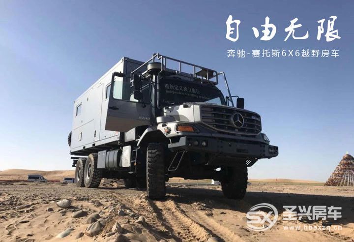 奔馳賽托斯6X6越野房車,全球限量九臺,亞洲唯一 一臺。奔馳塞托斯全地形越野房車凝聚卓越品質與領先科技,面對挑戰迎難而上,特為永不妥協的專業人士而生。它就像沙漠中的駱駝一樣,等待你去征服去駕馭。